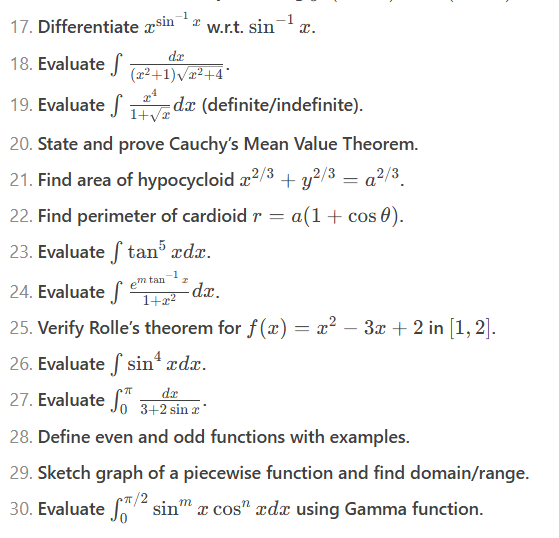 The top 30 most frequently Important questions Calculus
